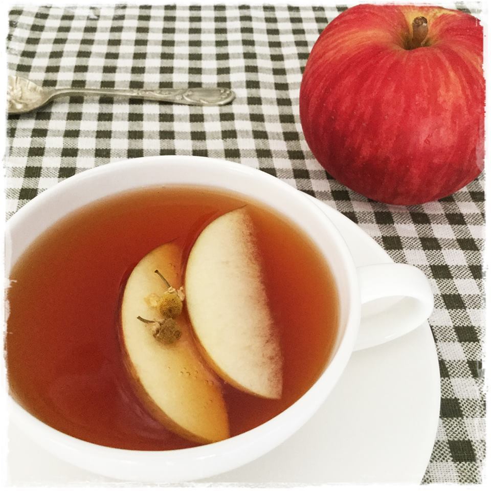 林檎畑で収穫した林檎と、″大地の林檎"と称されるカモマイルを合わせて、秋の優しいお茶を作ります。カントリーライフをイメージして、シチューやスープを作るようにお鍋でコトコトお湯を沸かしてのお茶作りです。