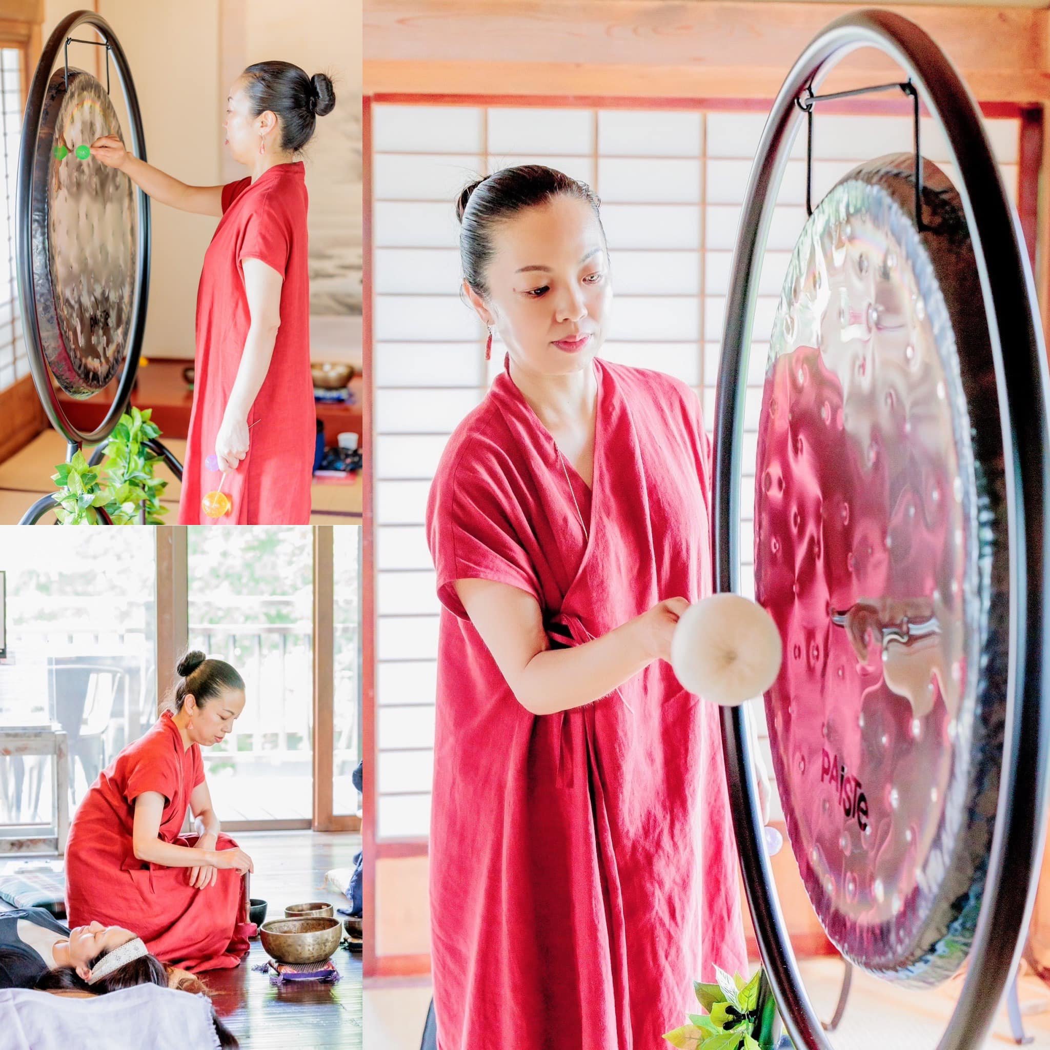 低音のサウンドヒーリング(ゴング・シンギングボウル):体の芯まで響き、鎮静効果